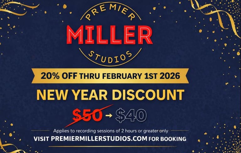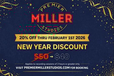 Whether you're tracking vocals through the versatile AKG 414, capturing the energy of a full live kit with our dedicated drum mic array, or utilizing our suite of guitars, bass, and keys, we provide the precision of a high-end facility with the privacy of a boutique creative space. From custom beat production to pristine mixing and mastering, Premier Miller Studios is your dedicated partner in turning local talent into global sounds.